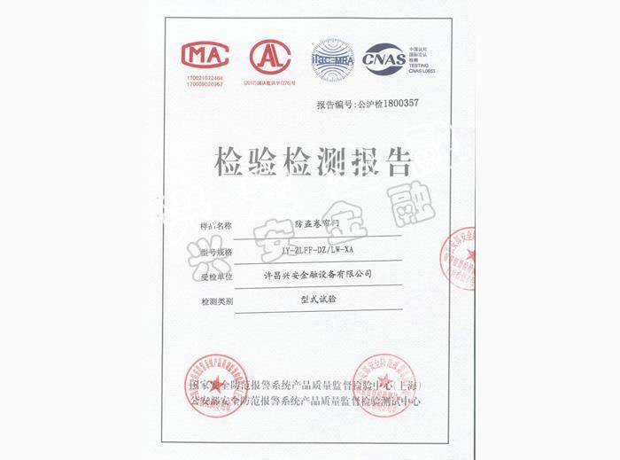 防盜安全門檢驗(yàn)報告